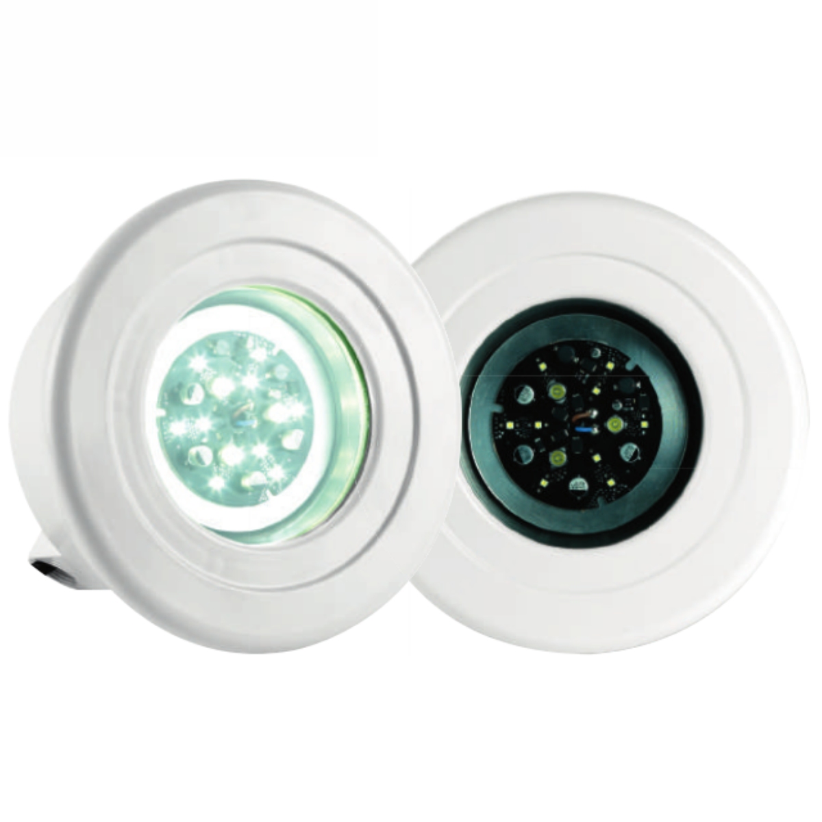 Faro completo a luce fissa bianca fredda a 12 Led – 12 V AC, compatibile con nicchia piccola (foro su pannello ø191 mm)