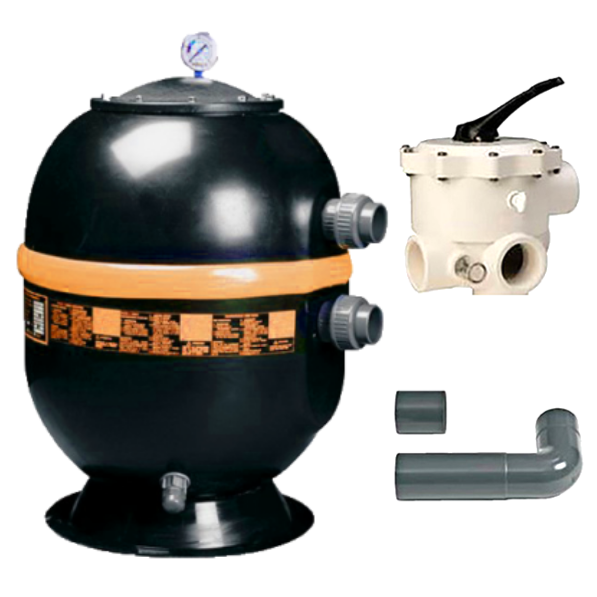 Il filtro è idoneo per acque dolci e di mare ed è caratterizzato da un coperchio nero di grandi dimensione fissato con bulloni in acciaio inox. Nella parte superiore del coperchio troviamo il manometro per la lettura rapida della pressione (possibilità di fissaggio anche sulla valvola multivie). Questa tipologia di filtro è stato progettato con un numero di candelette calcolato per ottenere un perfetto funzionamento idraulico.