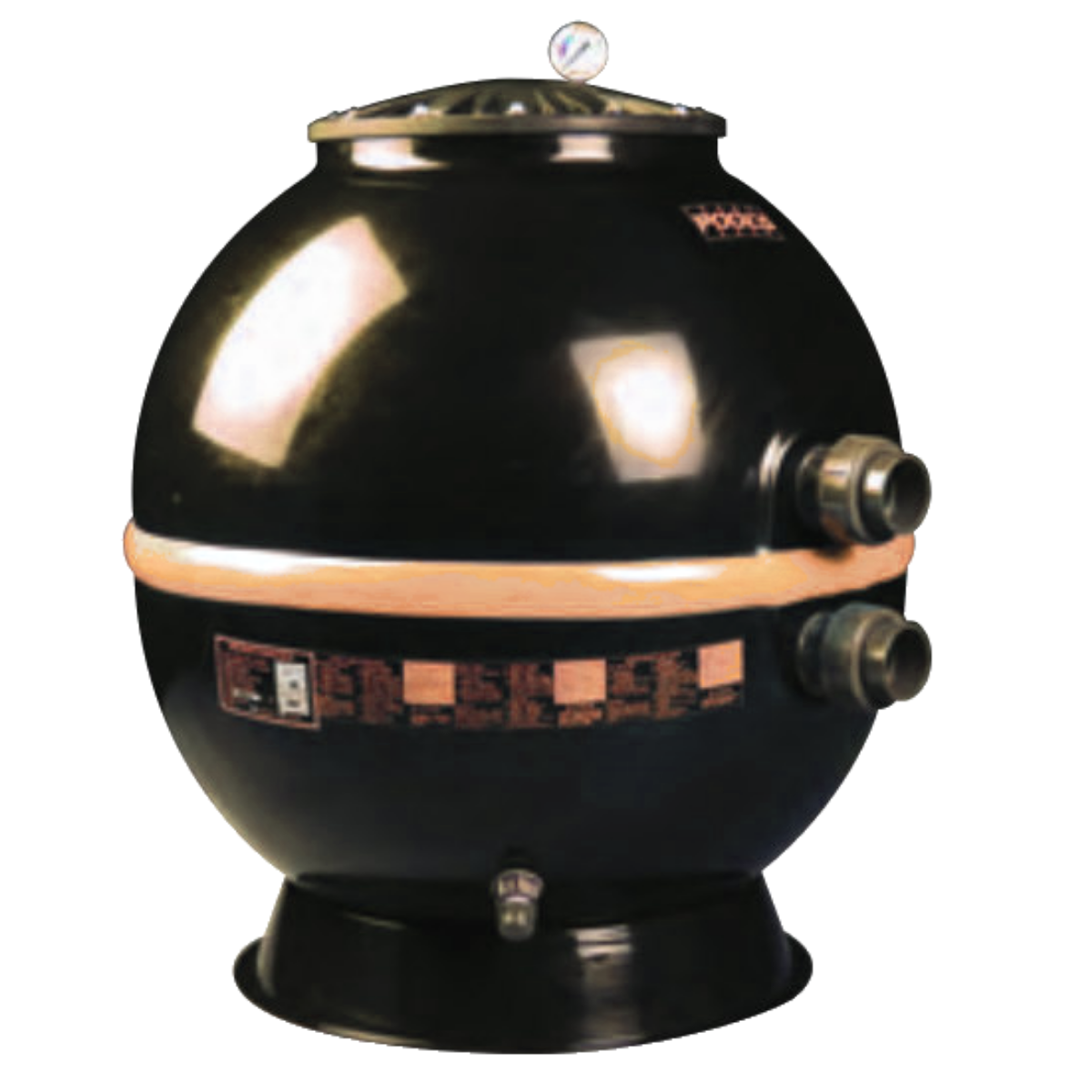 Il filtro è idoneo per acque dolci e di mare ed è caratterizzato da un coperchio nero di grandi dimensione fissato con bulloni in acciaio inox. Nella parte superiore del coperchio troviamo il manometro per la lettura rapida della pressione (possibilità di fissaggio anche sulla valvola multivie). Questa tipologia di filtro è stato progettato con un numero di candelette calcolato per ottenere un perfetto funzionamento idraulico.