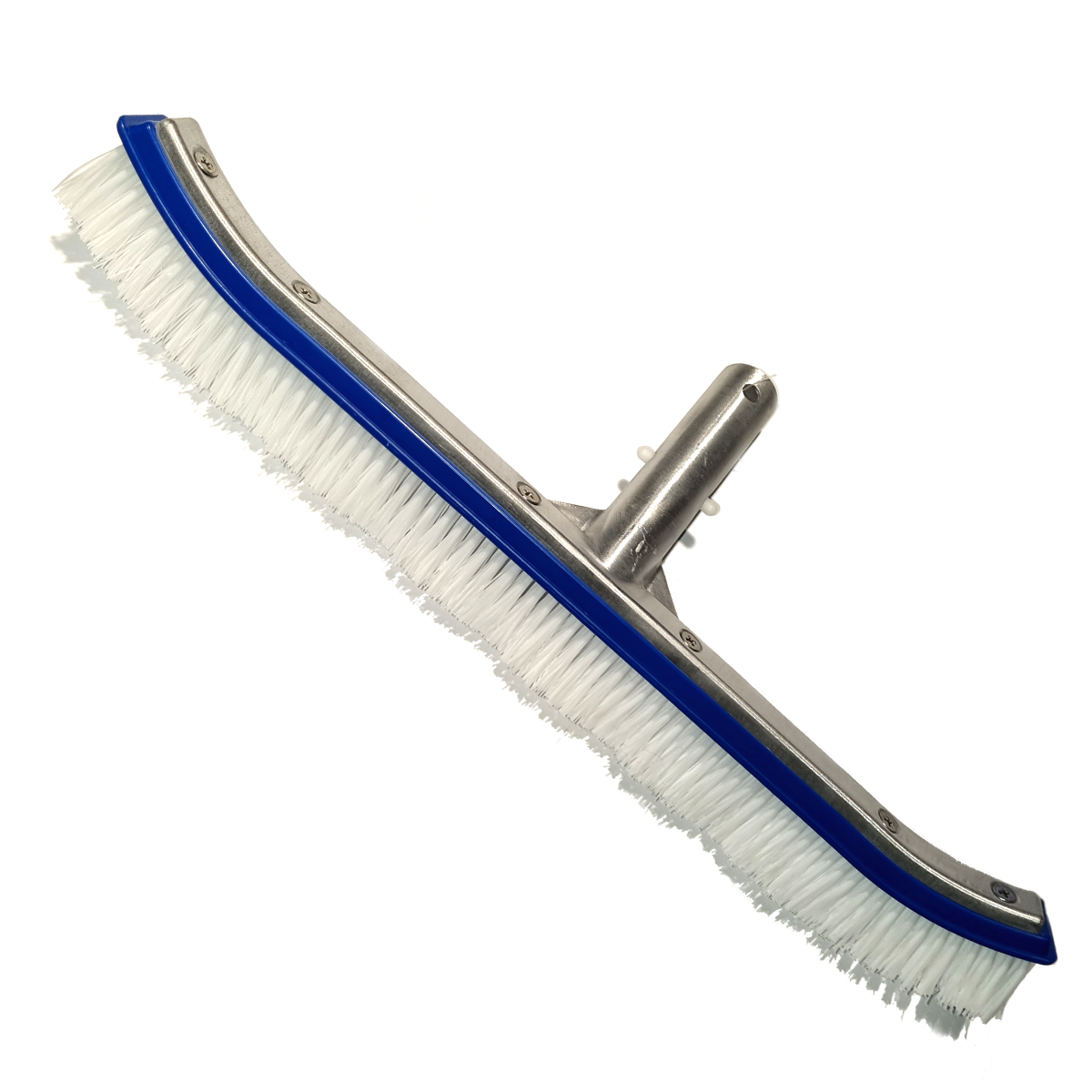 Spazzola con setole in PVC realizzata con un pratico manico rinforzato in alluminio per una maggiore resistenza durante la pulizia della vasca. La spazzola è specifica per la pulizia delle pareti della piscina con rivestimento in PVC.