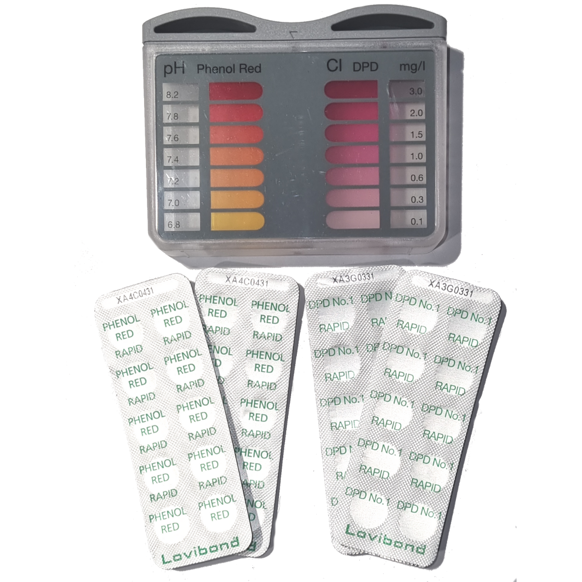 Il Tester manuale Lovibond è composto da un misuratore a 2 celle distinte con una tabella colorimetrica divisa , una per la misurazione dei parametri del pH e l’altra per il valore del Cloro libero.